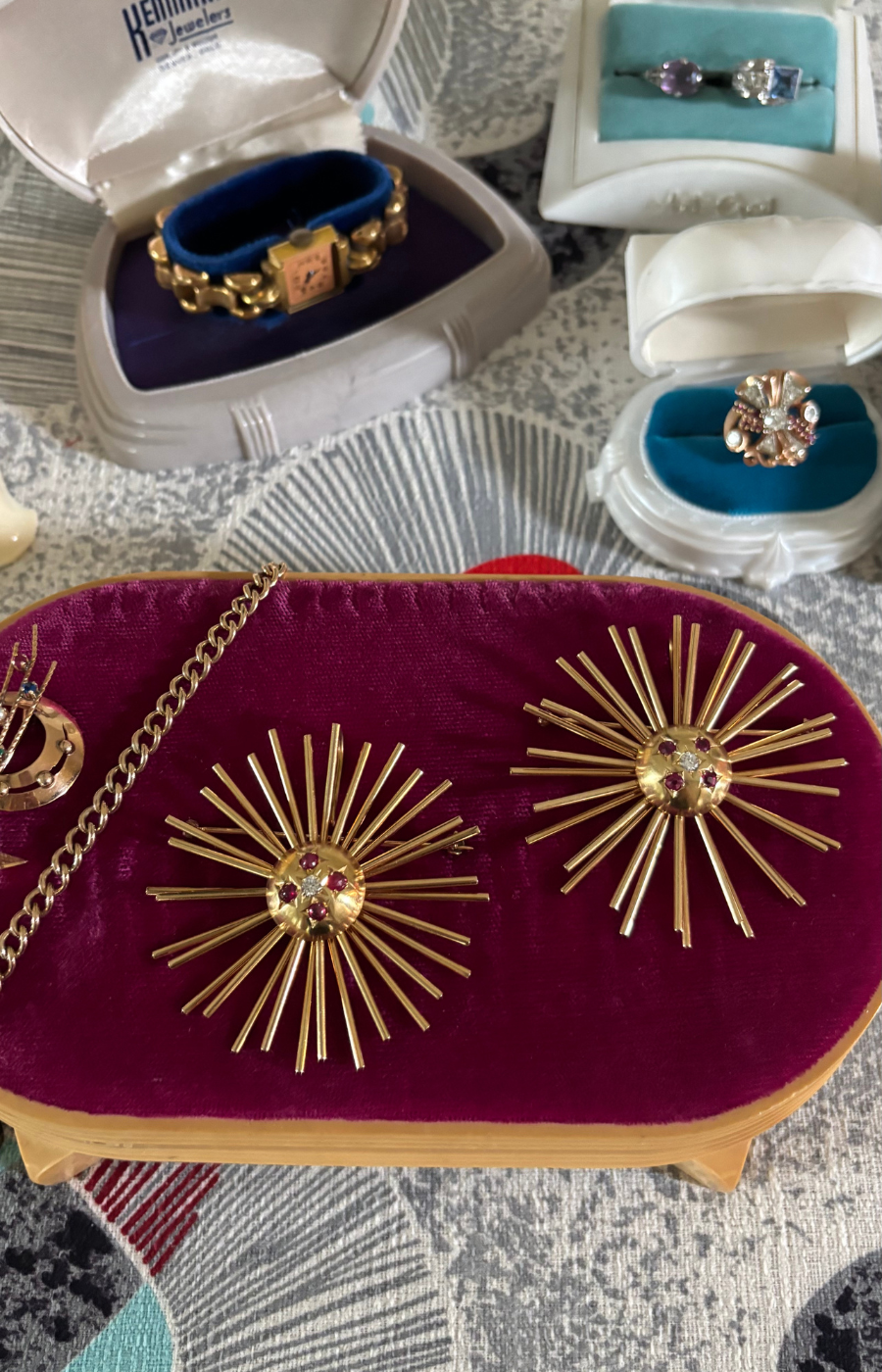 My eye has been shaped over decades. I’ve studied vintage design and jewelry for more than 30 years through deep personal collecting, research, and reverence. My archive of midcentury costume jewelry has taught me how to recognize quality, trace design influences, and understand what makes a piece endure.